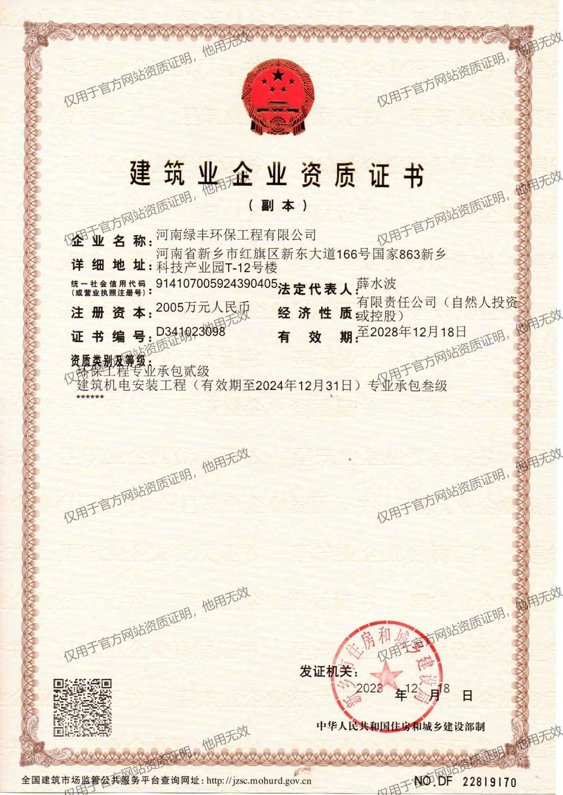 近日,河南綠豐環保工程有限公司(中原綠豐)收到湖北潛江中珠返灣湖商貿發來的表揚信,對中原綠豐承建的廢水處理項目安裝服務給予肯定。